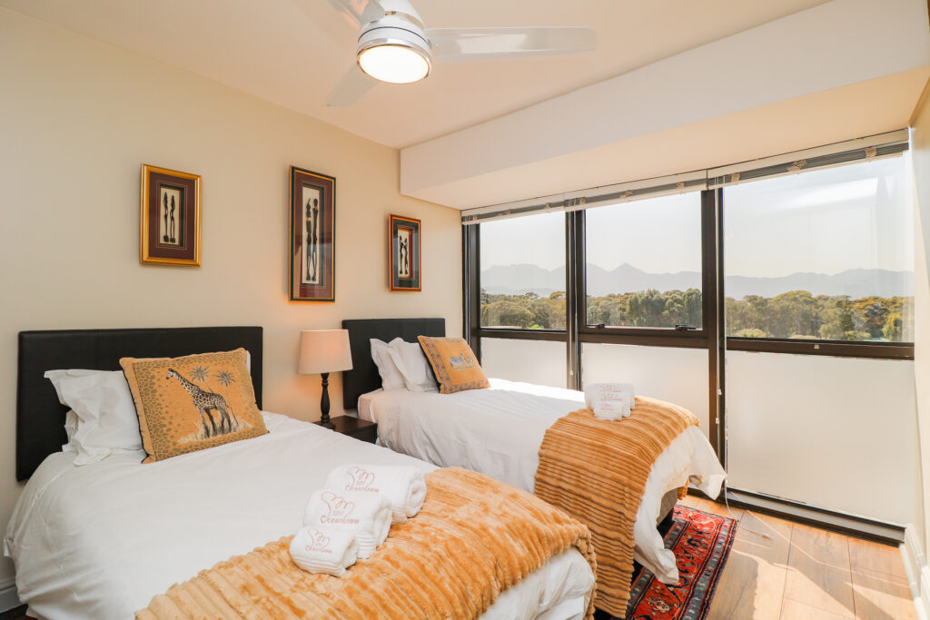 The third bedroom has two single beds (hypo allergen) with night stand and provides luxury linen, towel set and beach towels. There is sufficient cabinet space as well as a ceiling fan. This bedroom has mountain view.